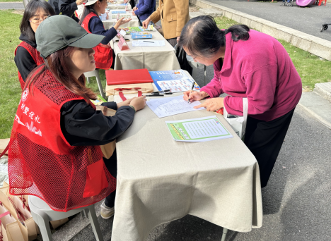 活動當天,中心廣場熱鬧非凡,身著紅色志愿者馬甲的工作人員成為了一道靚麗的風景線,吸引了不少居民駐足圍觀參與進來。社區工作人員化身“分類指導員”,一邊向過往居民發放圖文并茂的宣傳單頁,一邊結合生活實例細致講解分類技巧:“可回收物要記住‘干凈、干燥、可循環’,像紙箱、塑料瓶要清空殘留再投放”“廚余垃圾是‘能腐爛、易降解’的,比如剩菜剩飯、果皮菜葉,但大骨頭硬度高,得歸到其他垃圾”。針對老年居民容易混淆的類別,工作人員耐心答疑,用“藍色可回收、綠色廚余、紅色有害、灰色其他”的顏色口訣幫助記憶,現場互動頻頻、氛圍熱烈。