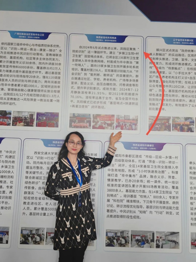 作為全國中風識別試點地區優秀代表,鳳翔區醫院卒中中心主導的中風識別工作成效在大會壁報區重點展示。自2024年試點工作啟動以來,在區衛健局及醫院的統籌推進下,卒中中心聚焦“院前識別”薄弱環節,構建“鄉鎮衛生院+村衛生室”雙層哨點體系,將全區236家村衛生室全面納入卒中急救網絡,讓村醫成為卒中救治“第一吹哨人”。同時,面向19家鄉鎮衛生院開展多輪系統培訓,實現236名村醫卒中識別能力全覆蓋提升。在群眾端,通過社區、學校、養老機構等多場景宣講,結合義診、血壓血糖監測、問卷調查等形式,顯著提升了群眾早識別、早預防意識。數據顯示,2024年7月至12月,鳳翔區急性缺血性腦卒中靜脈溶栓率達21.95%,較2023年同期提升70.16%,遠高于全市、全省及全國平均水平。