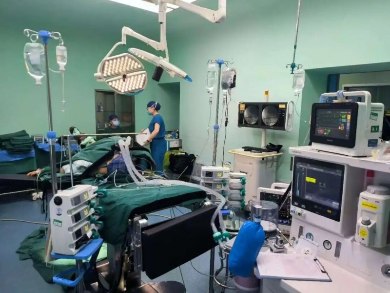 患者進入手術室后,手麻科團隊迅速就位,一系列準備工作有條不紊地展開,連接監護設備、進行有創動脈壓監測、PPV檢測、深靜脈置管測CVP以及準備藥品器械。每一項細節都為患者的生命安全保駕護航,筑牢麻醉安全防線。