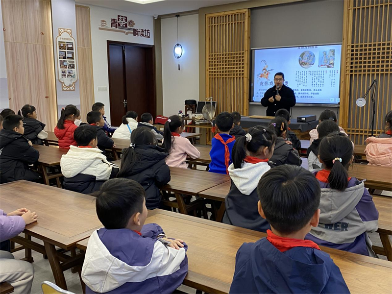 在實踐體驗環節,最令人期待的環節當屬皮影戲表演體驗。同學們手持皮影,在毛武順的示范下學習操控技巧,嘗試演繹簡單的故事情節,一邊精彩舞動著皮影人偶,一邊為角色配音,把“唐僧”“孫悟空”“豬八戒”等經典角色舞得活靈活現。幕布后,光影交錯間,一個個生動的皮影形象躍然其上,將非遺皮影戲的魅力展現得淋漓盡致?!斑@真是太有趣了,自己動手體驗,感覺就是不一樣,好好玩呀?!斌w驗過后,一位同學意猶未盡地說道。