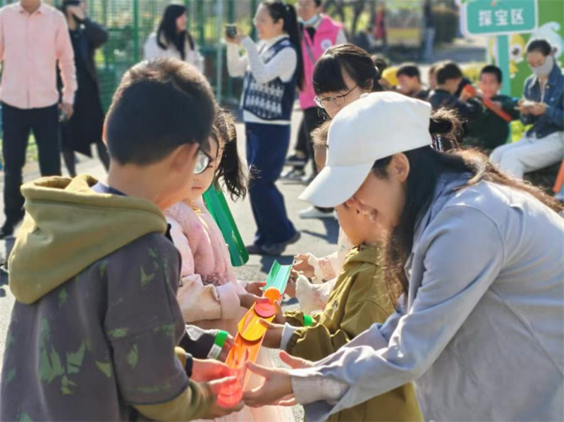 而“能量傳遞”游戲則將活動推向高潮,孩子們手手相連,小心翼翼地傳遞圓環,一旦掉落便迅速溝通調整節奏重新開始?!安荒芑?,要跟旁邊的小伙伴配合好!”8歲的林梓軒大聲提醒隊友,在反復嘗試中深刻體會到“人心齊,泰山移”的和合智慧與團隊力量。