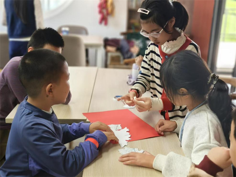 團隊協作環節氛圍熱烈,將“護苗”行動中“互助共進”的理念充分踐行。五行拼圖游戲中,孩子們分組鉆研、互補短板,對照繪本中的傳統文化元素線索,快速完成拼圖;天臺地圖拼接任務里,大家共同查閱簡易地理讀物,合力還原地域輪廓,完成后高高舉起作品,笑容格外燦爛?!皬那昂⒆涌倫圩约和?,現在不僅會主動分享方法,還會帶著小伙伴一起查閱資料,閱讀和協作能力都進步了?!比膛阃募议L王女士感慨道。