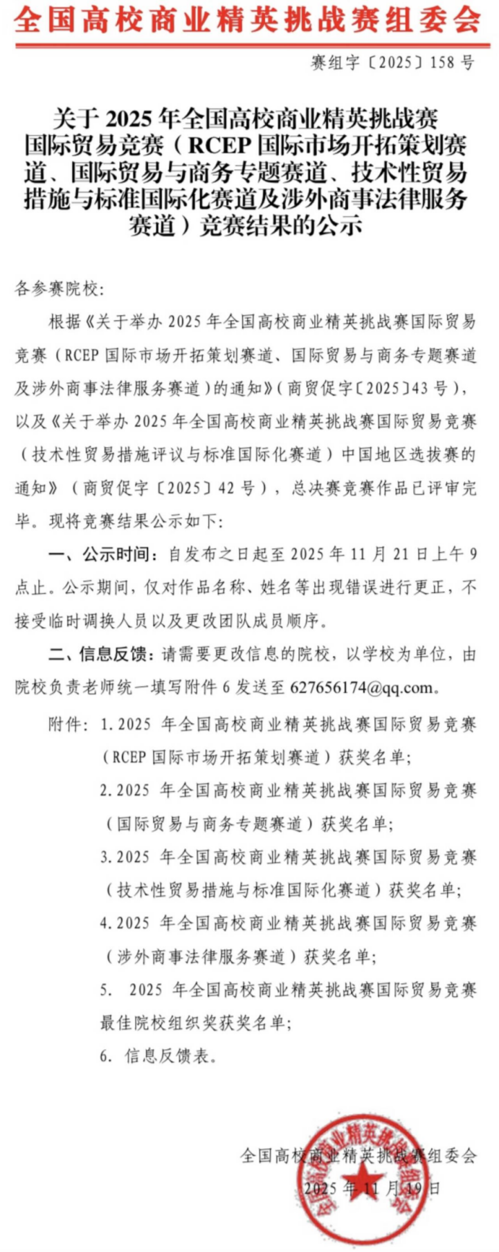 該賽事由全國高校商業精英挑戰賽組委會主辦,設RCEP國際市場開拓策劃、國際貿易與商務專題、技術性貿易措施與標準國際化、涉外商事法律服務四大賽道,吸引全國多所高校學生同臺競技,是國際貿易領域極具影響力的品牌賽事,為學子提供交流學習平臺。