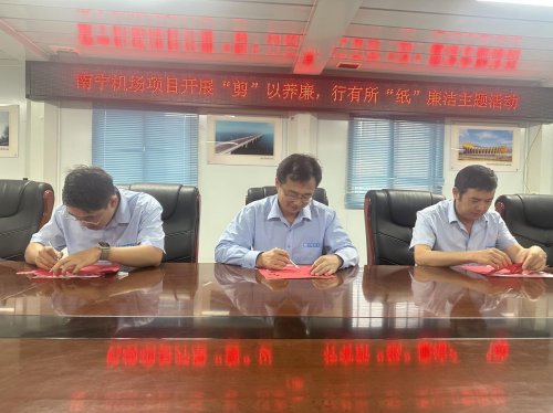 中建六局中建橋梁南寧機場項目開展“‘剪’以養廉,行有所‘紙’”活動