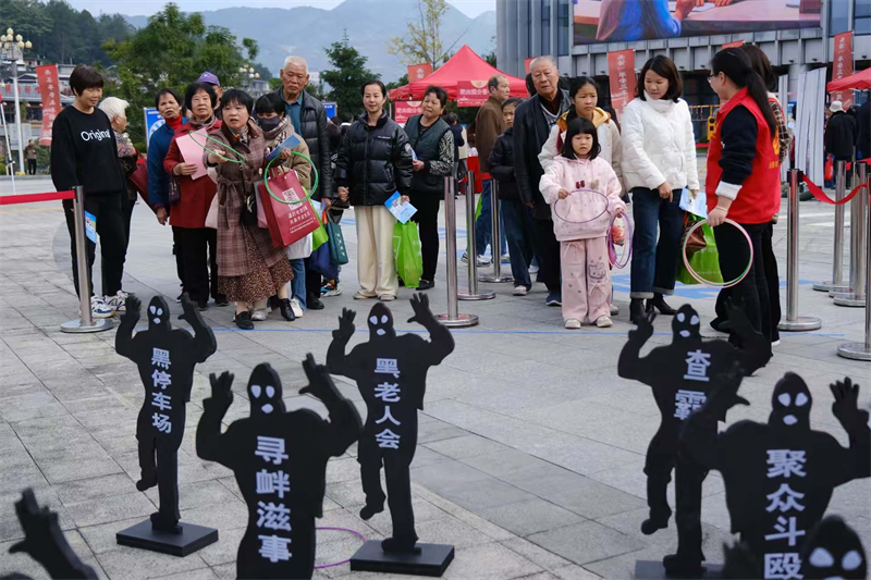 在活動游戲區,縣護路辦將鐵路護路安全知識融入“平安知識翻翻樂”“套住黑惡守平安”等互動環節,通過集章打卡、知識問答等形式,引導群眾在參與游戲的過程中學習護路安全要點,讓“護路有責、護路盡責”的理念以更生動的方式傳遞給現場群眾,進一步提升了宣傳的趣味性與參與度。
