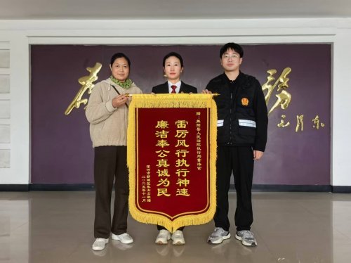 11月27日,一面印有“雷厲風行執行神速、廉潔奉公真誠為民”金色字樣的錦旗送到了舞陽法院執行局副局長董士敏手中。錦旗不僅是當事人的謝意,還代表著對司法為民的生動見證。