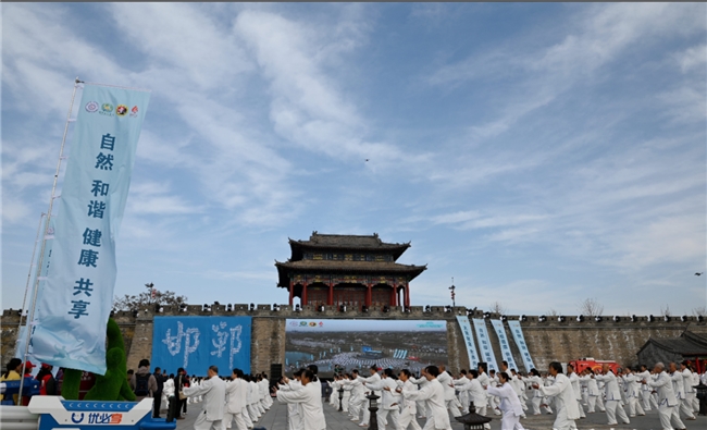 11月23日,邯鄲市永年區廣府古城南城門廣場人潮涌動,鼓樂悠揚。隨著江蘇江陰主會場同步啟動的倒計時聲,3450名參演人員身著素色太極服,緩緩起勢,24式簡化太極拳的柔美與力量在此刻交融——作為全國四大分會場之一,“國際太極拳日”申報成功紀念展演活動(邯鄲分會場)在此拉開帷幕,以“太極圣地”的千年氣韻,向世界遞出一張流動的文化名片。